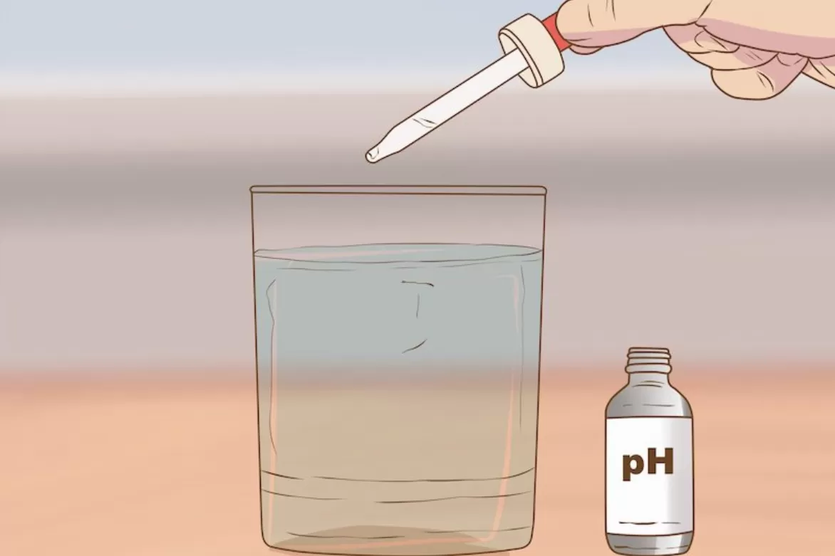 Bước 2: Nhỏ 2–3 giọt dung dịch kiểm tra pH vào ly nước.