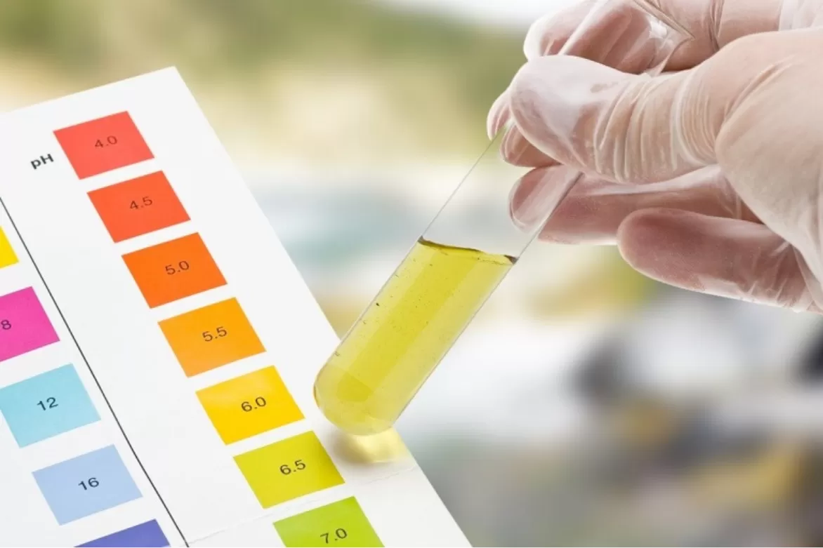 Bước 3: Quan sát màu sắc nước vừa đổi màu và so sánh với bảng màu pH đi kèm. Nếu nước đổi sang màu xanh dương, tím hoặc xanh lá đậm là nước kiềm, nước đổi màu vàng, cam hoặc đỏ là nước axit.